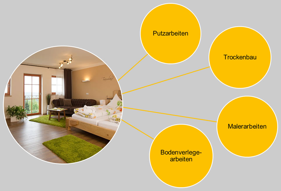 Durch unseren großen Leistungsumfang und der Zusammenarbeit mit unseren Partnerbetrieben können wir viele Gewerke unter ein Dach bringen und reibungslos für eine schnelle Fertigstellung garantieren.